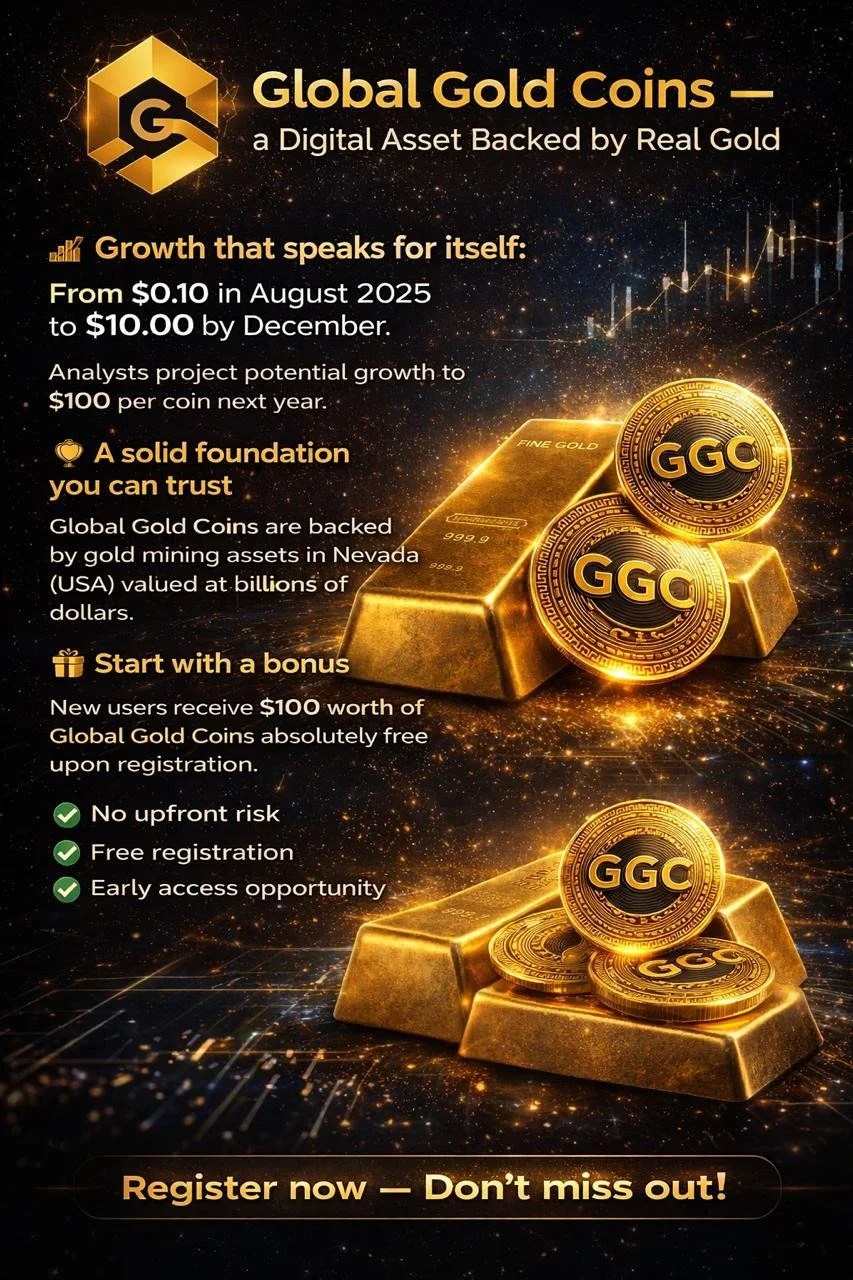 Act now, register today and claim $100 worth of GGC Coins for free. Don't miss your chance to purchase early in a digital asset designed for growth and long-term wealth preservation.
